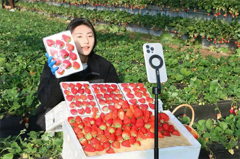如今,她在平谷区山东庄镇鱼子山村运营着76个备案果蔬大棚以及3家实体店,自主种植高端花香蓝莓、红颜草莓、美早樱桃等特色水果。她的目标不仅是打造属于自己的高端品牌矩阵,更在于通过亲身实践,探索一种可复制的、能让更多农户受益的“数字 +农业”模式。