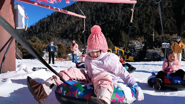 不远处的石卡雪山,雪道如白色绸缎缠绕山间,雪上投壶、雪地射箭等项目区欢声不断。来自东南亚的游客在这里解锁“人生第一座雪山”,将对冰雪的憧憬化作真切体验。香格里拉七星雪滑雪场中热闹非凡,雪地摩托的轰鸣、雪圈滑行的欢呼此起彼伏,戏雪乐园里的雪地寻宝、雪地拔河等项目让孩童们乐此不疲。
