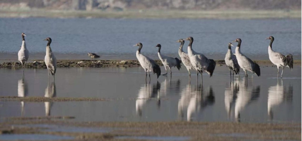 寒极之处,亦有灵动生机与人间暖意。纳帕海湿地此时化身“飞羽天堂”,黑颈鹤舒展羽翼在冰面漫步,秋沙鸭灵活穿梭于未封冻的水域,游人远远观赏,与自在的生灵构成一幅和谐的冬日图景。