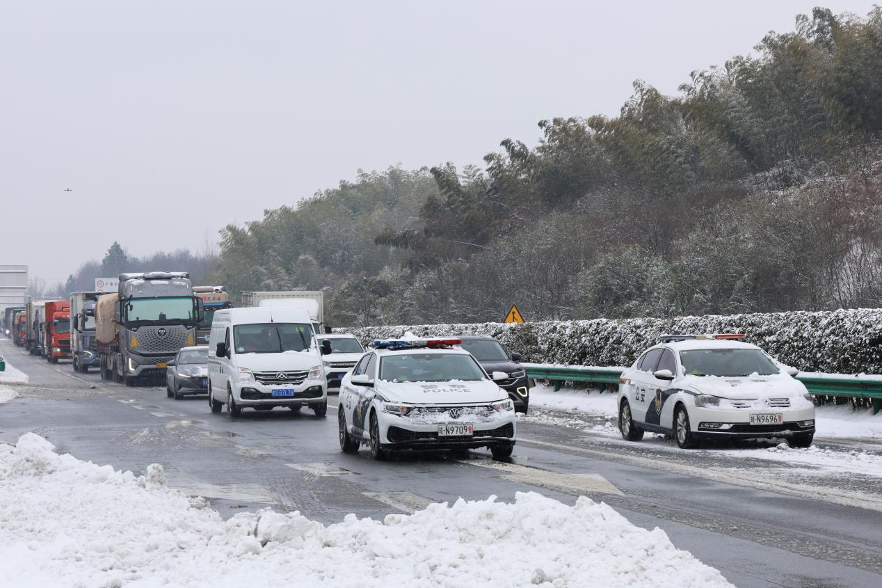 “我们按照应急预案,全员在岗在位,在降雪后一边保障道路通行安全,一边协同运营单位进行铲冰除雪作业。”六安市交管支队高速三大队大队长杨传俊表示。