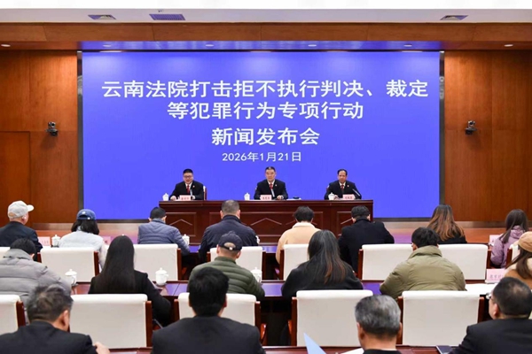 1月21日,云南法院召开打击拒不执行判决、裁定等犯罪行为专项行动新闻发布会。会上通报了全省法院开展打击拒不执行判决、裁定等犯罪行为专项行动取得的阶段性成果,并发布5起典型案例。
