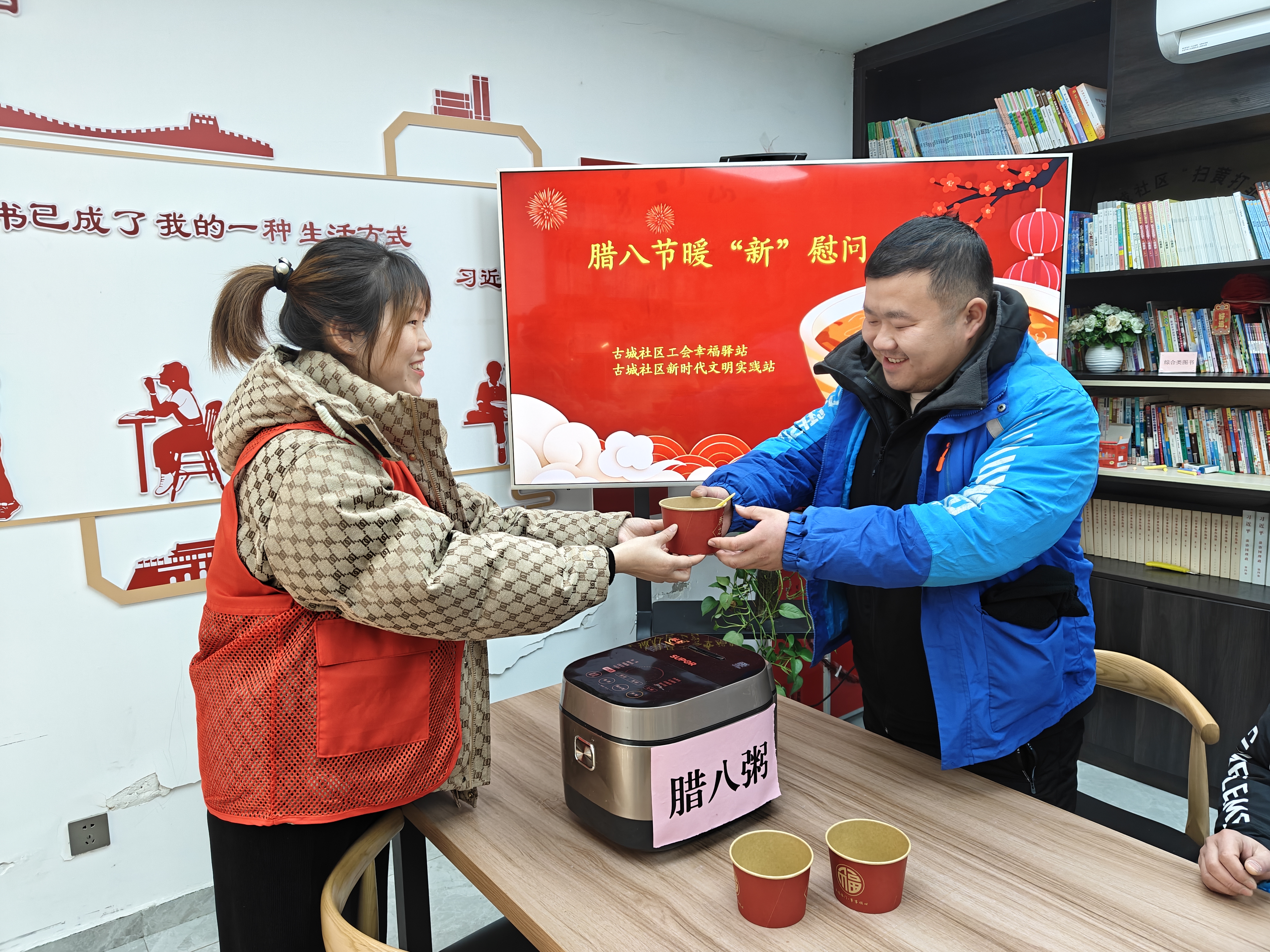 岁末寒冬,腊八添暖。1月21日上午,庐阳区亳州路街道古城社区工会幸福驿站内暖意融融,一场以“腊八暖‘新’关爱同行”为主题的慰问活动温情启幕。古城社区邀请辖区内数十名外卖小哥齐聚一堂,共品香甜八宝粥,领取暖心慰问物资,在传统佳节氛围中感受来自工会组织的关怀与暖意。