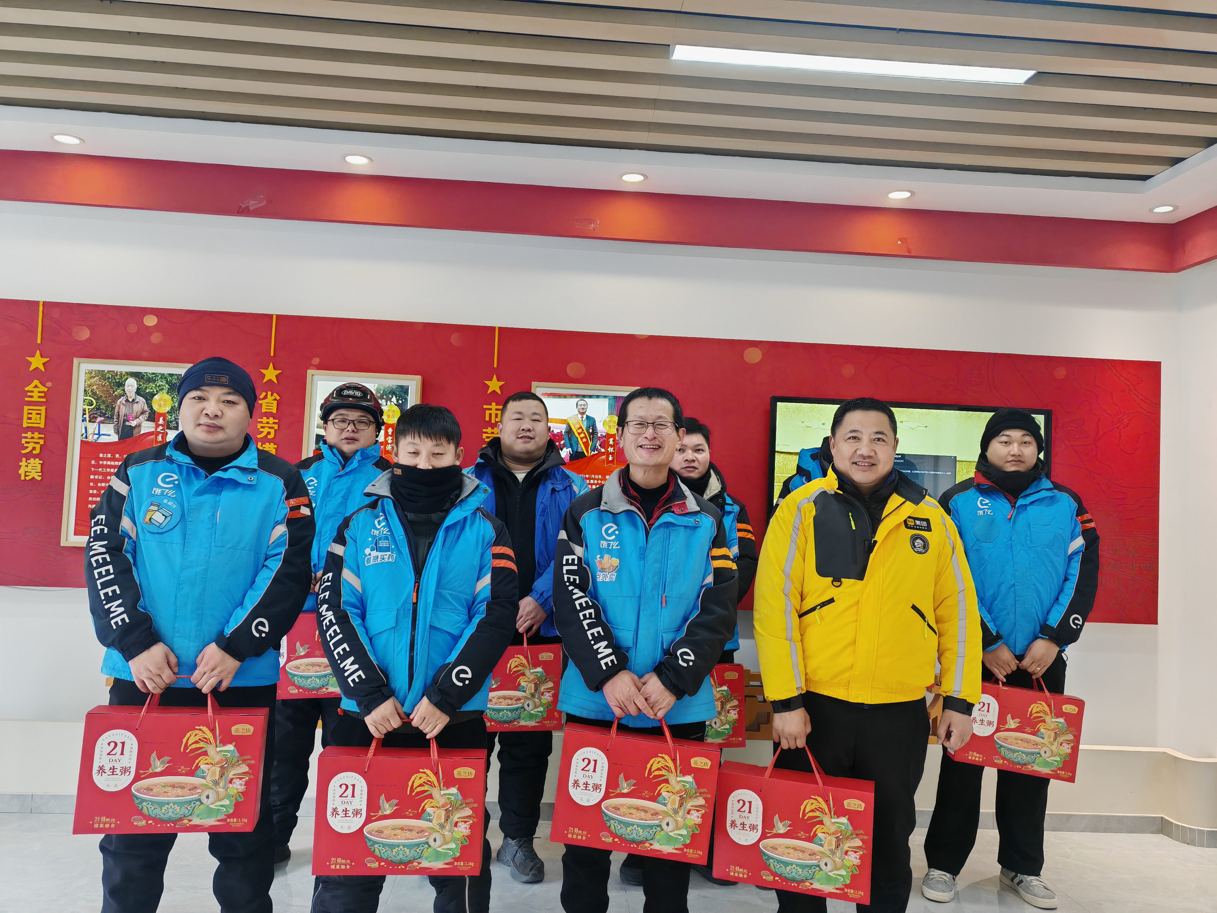 除了共品腊八美食,工会还为每位参与活动的外卖小哥准备了贴心的慰问物资——包含多种养生粥品的物资包,既贴合腊八节饮食习俗,又满足了骑手们日常补充营养。发放物资时,社区工作人员不忘叮嘱他们在坚守岗位的同时注意保暖、劳逸结合,让奔波在大街小巷的“城市摆渡人”感受到实实在在的关怀。同时也引导他们积极参与到社区治理中,穿梭在大街小巷时,若发现一些窨井盖松动、电线拖地等安全隐患,及时向所在社区反映,共建和谐社区。
