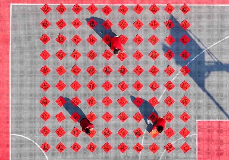 2026年1月21日,在安徽省合肥市庐阳区林店街道金池社区,省书法家协会会员正在为居民义务写春联,送“福”字。当日,林店街道综合文化站邀请省书法家协会会员走进社区,为居民写春联和“福”字,让群众在家门口享受“文化大餐”,迎接新春佳节的到来。(文/谭炎哲 庐阳区人民政府)