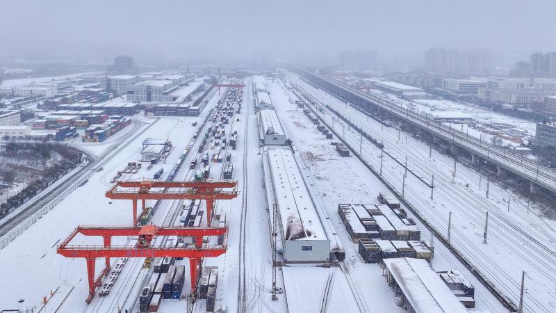 2026年1月20日,在安徽省合肥庐阳经济开发区辖区合肥北站物流基地,众多中欧班列(合肥)集装箱正整装待发。据了解,中欧班列(合肥)2025年开行723列,连续三年稳健攀升,同比增长10.28%以上。截至目前,中欧班列(合肥)已辐射欧亚大陆20个国家、179个站点,安徽家电、机械设备、建材、新能源汽车、电子产品正由此源源不断地“走”向世界。(文/何晶 庐阳区人民政府)
