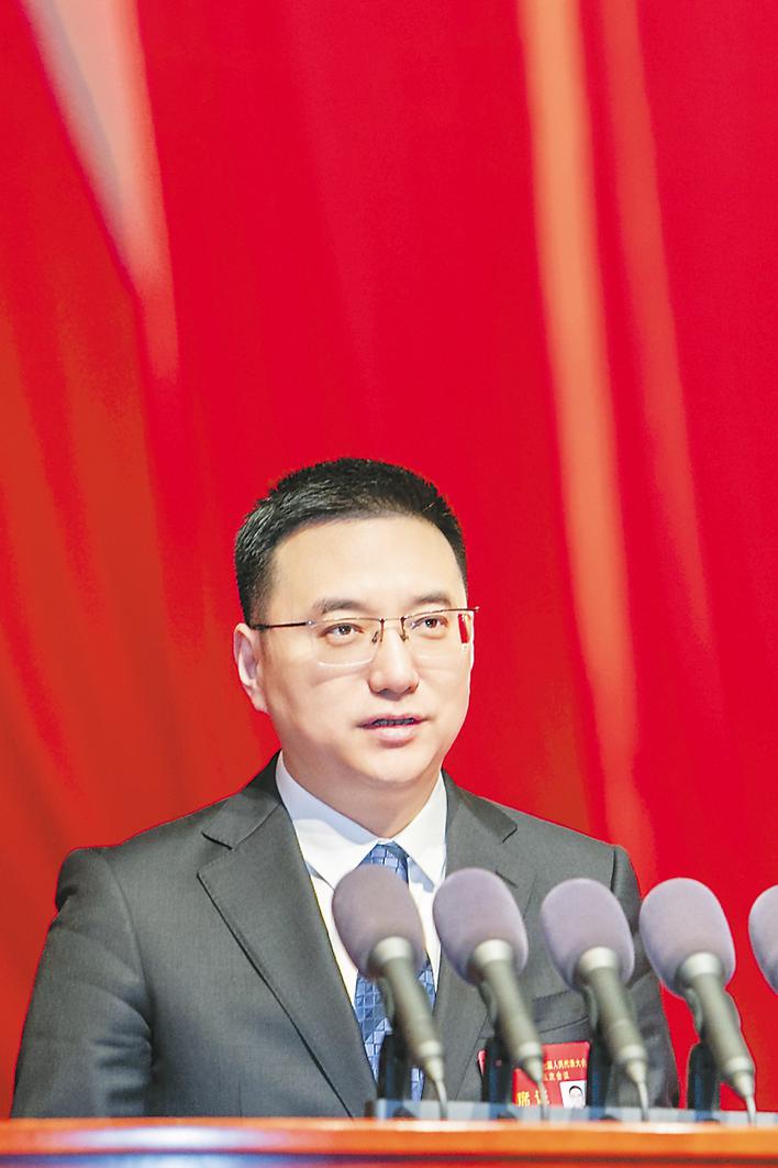 市人民政府代理市长张泉作政府工作报告。记者 高博 虞俊杰 摄