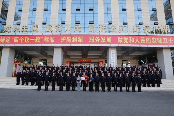 云南省公安厅水上巡逻总队(下文简称“总队”)举行仪式,欢迎谭建华载誉归队,总队主要领导及党委班子成员前往迎接,并向谭建华及其家属献花,表示祝贺与慰问;民警职工代表在营区整齐列队,以热烈的掌声和崇高敬意欢迎其归来,现场气氛庄重而热烈。