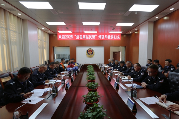欢迎仪式后,总队组织召开“学习‘最美’民警,践行使命担当”主题座谈会,谭建华分享获奖感言并作表态发言,其家属讲述了自己的感受,参会人员结合自身岗位职责依次交流发言,总队主要领导作总结讲话并就深入开展学习宣传谭建华先进事迹活动作出部署。
