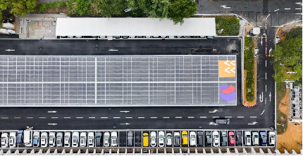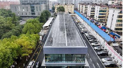 停车场屋顶铺满光伏矩阵。