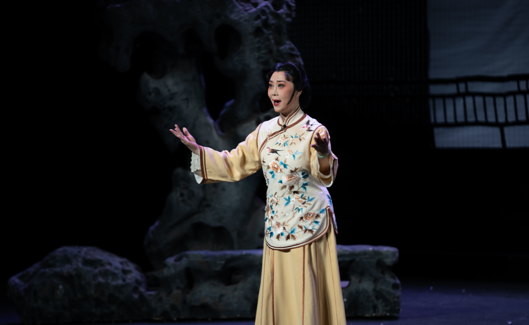 值得一提的是,舞台造景上使用了长窗、院落、假山,展现出江南水乡的韵味。“我们采用了童谣音、太平调、南方调清版的音调来创腔。”王芳介绍,“唱腔具有融合性,同时突出苏州元素,融汇而成一部苏剧现代戏。”
